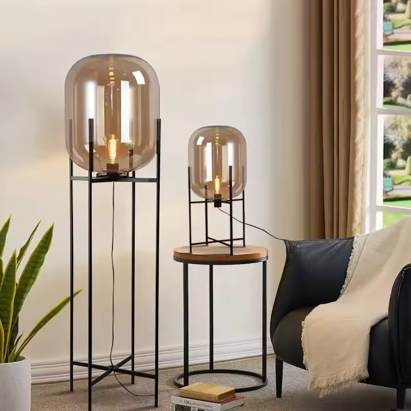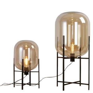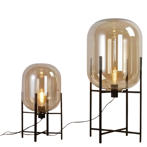 Modell : Tischleuchte aus getöntem, mundgeblasenem Glas – Nordischer Minimalismus