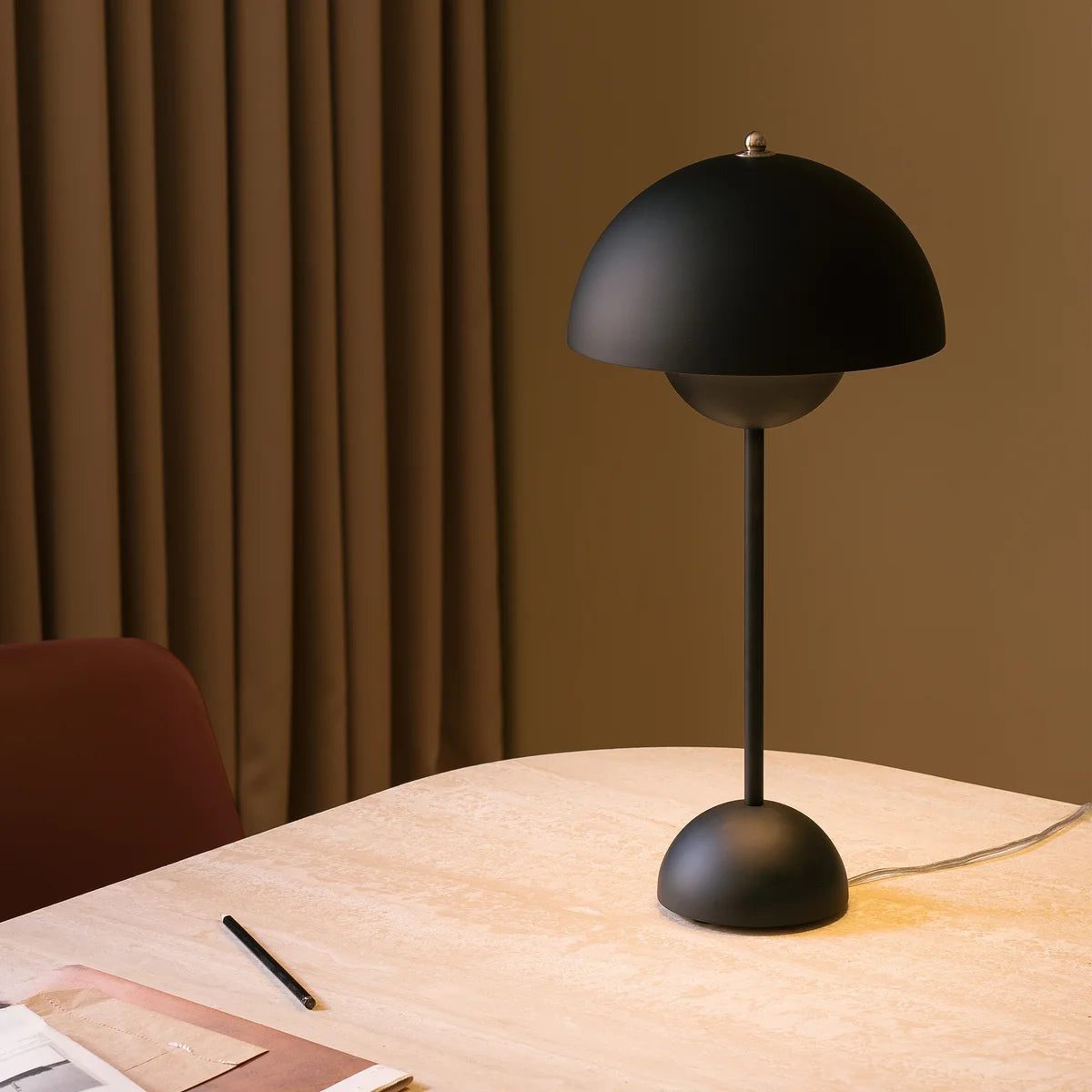 Tischlampe im Pilz-Design mit einem eleganten, modernen Finish. Ideal, um einem Schlafzimmer, Büro oder Wohnzimmer einen Retro- und modernen Touch zu verleihen.