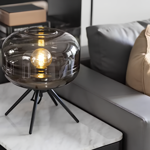 Verleihen Sie Ihrem Zuhause mit dieser Tischleuchte aus getöntem Glas einen Hauch von Eleganz. Ihre glänzende Oberfläche fängt das Licht sanft ein und wertet den Raum auf. Ob im Schlafzimmer, Wohnzimmer oder Büro – sie schafft eine sanfte und raffinierte Atmosphäre und setzt gleichzeitig einen modernen Akzent.