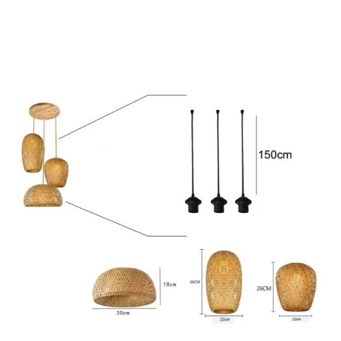 NATURA - Triple rattan pendant light – Warm atmosphere