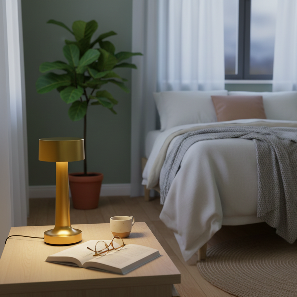 Rechargeable LED Table Lamp in Copper-Plated Iron – Ambient Lighting