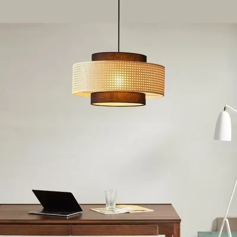 Model : Rattan & Fabric LED Pendant Light – Minimalist Design and Natural Ambiance