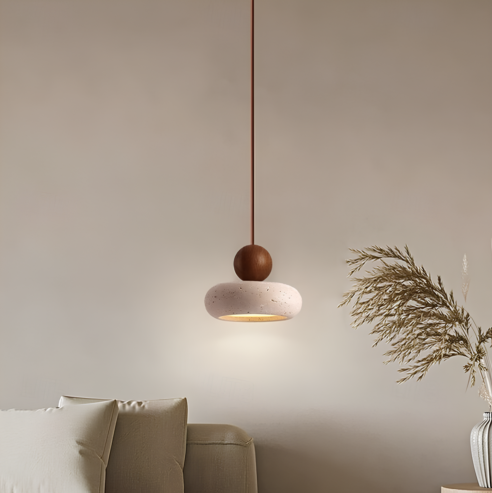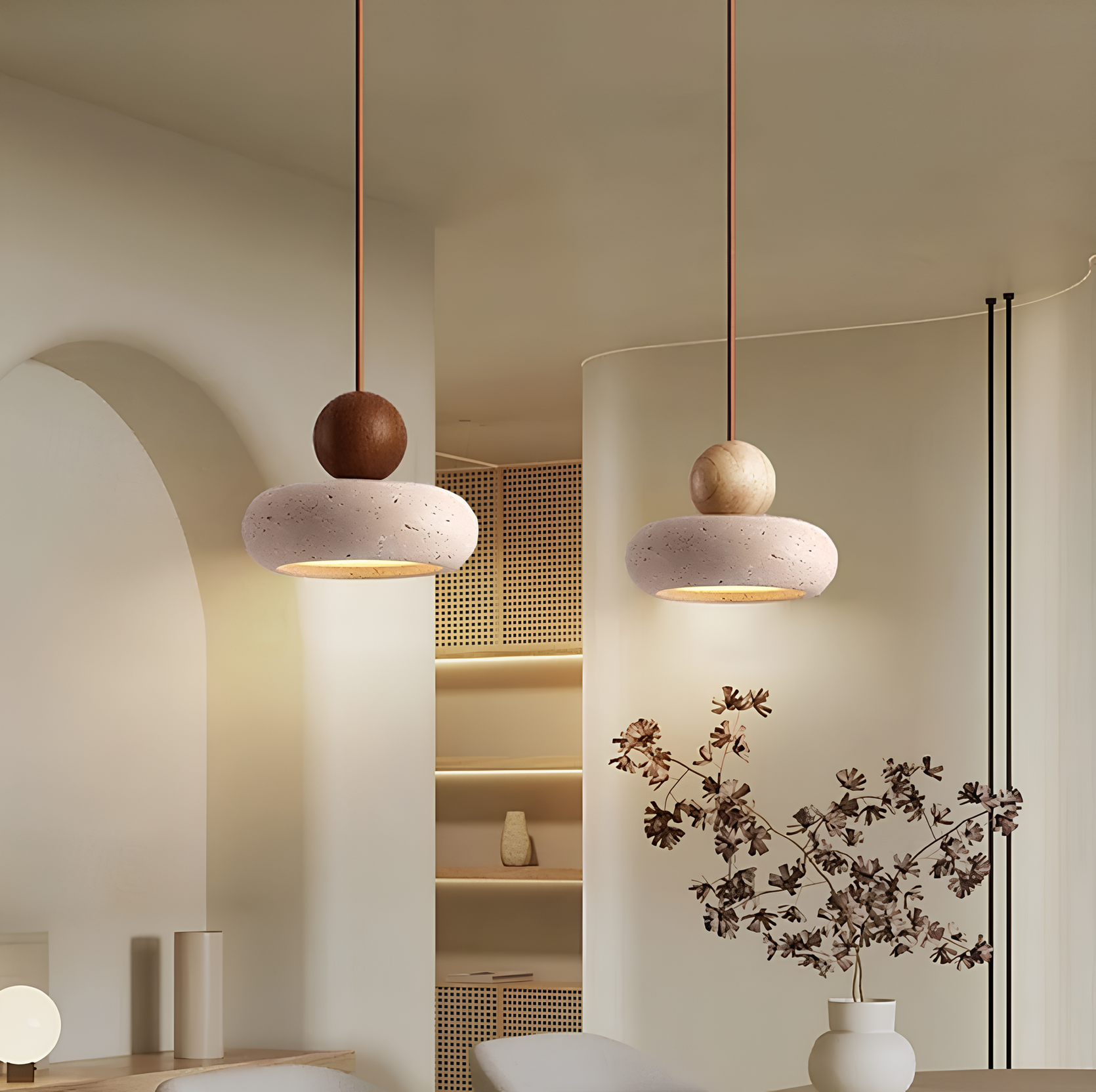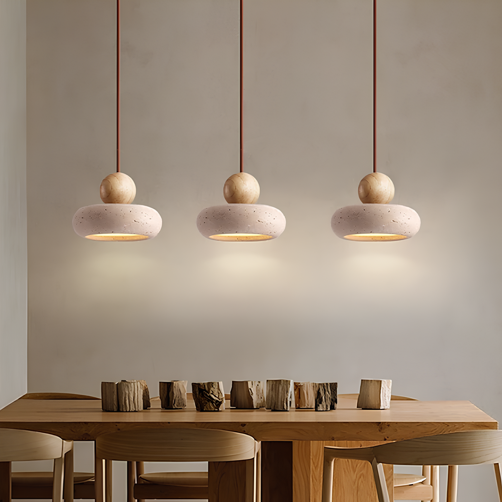 STINARIO - Travertine and Wood Pendant Light – Minimalist Elegance