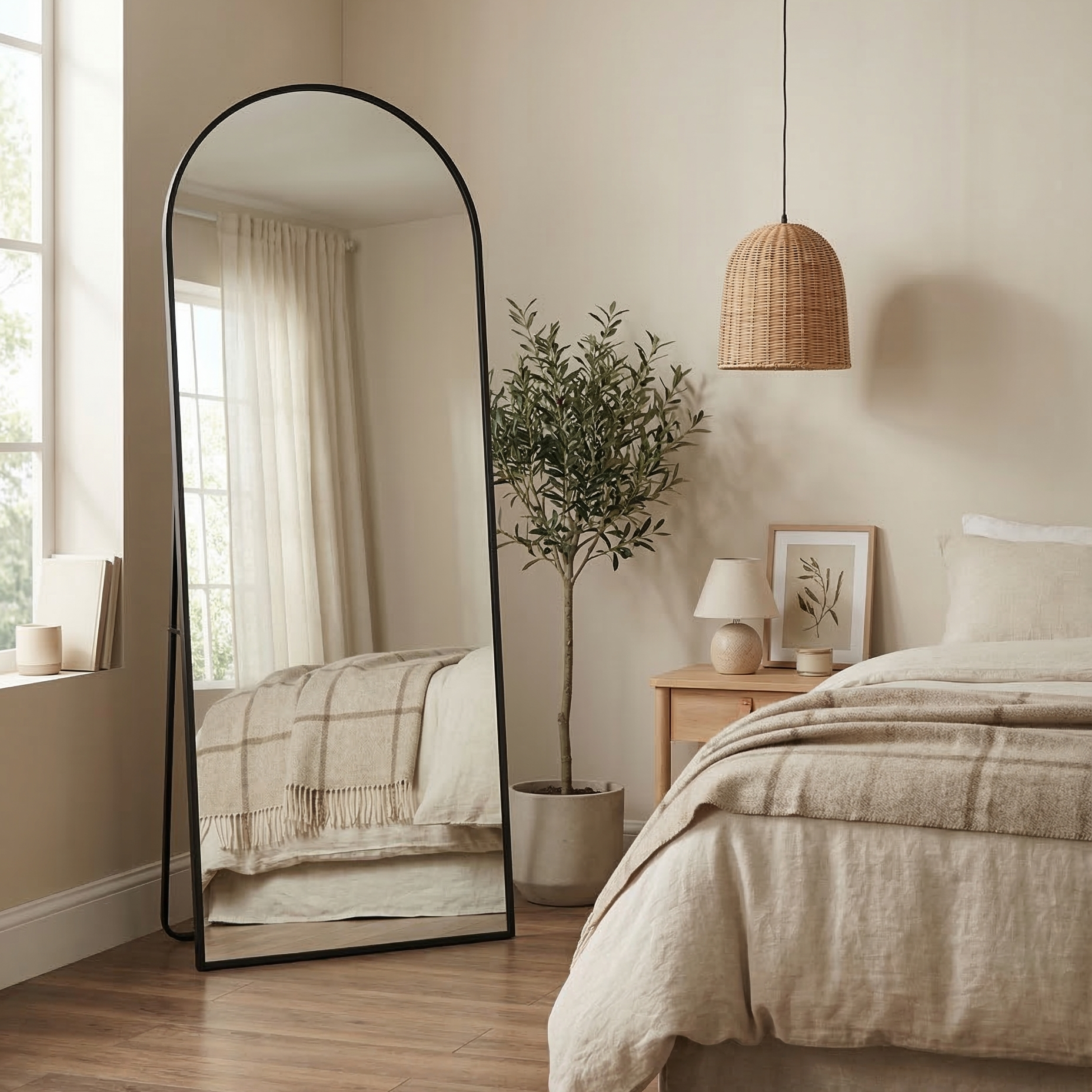 Avec sa silhouette arquée et son cadre fin, Elvane apporte immédiatement plus de hauteur et de tenue visuelle à une chambre, un dressing ou une entrée. C’est le type de pièce qui finit un espace sans le surcharger : utile au quotidien, mais assez élégante pour jouer un vrai rôle déco.