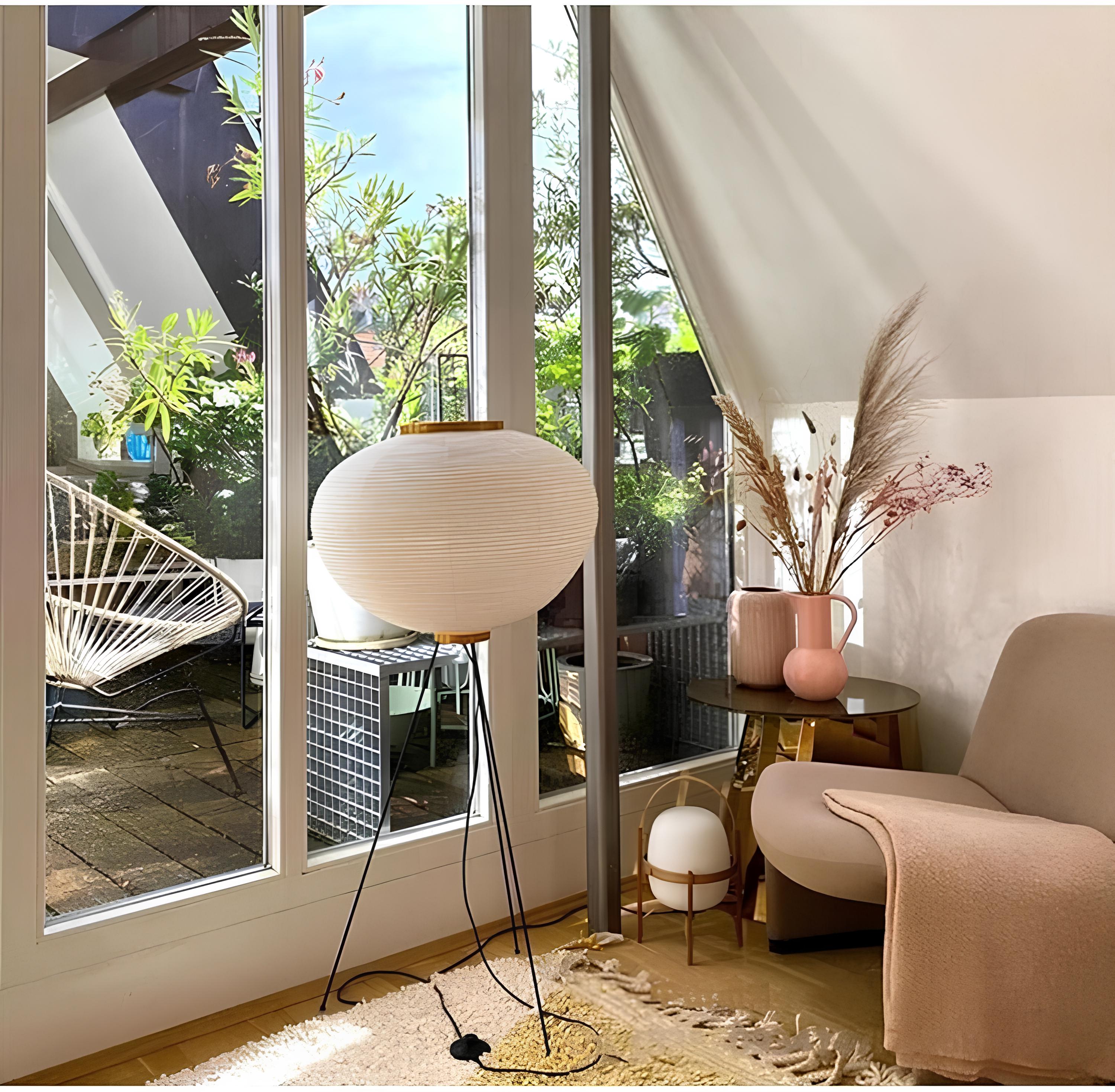 Modèle : Lampadaire Tripode en Papier Japonais – Douceur Zen et Minimalisme