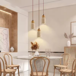 Sublimez votre intérieur avec cette suspension moderne mêlant bois naturel et pierre brute. Sa silhouette élégante et son design épuré en font un luminaire à la fois chaleureux et contemporain. Idéale dans une chambre ou une salle à manger, elle diffuse une lumière douce tout en apportant un charme naturel unique à votre espace.