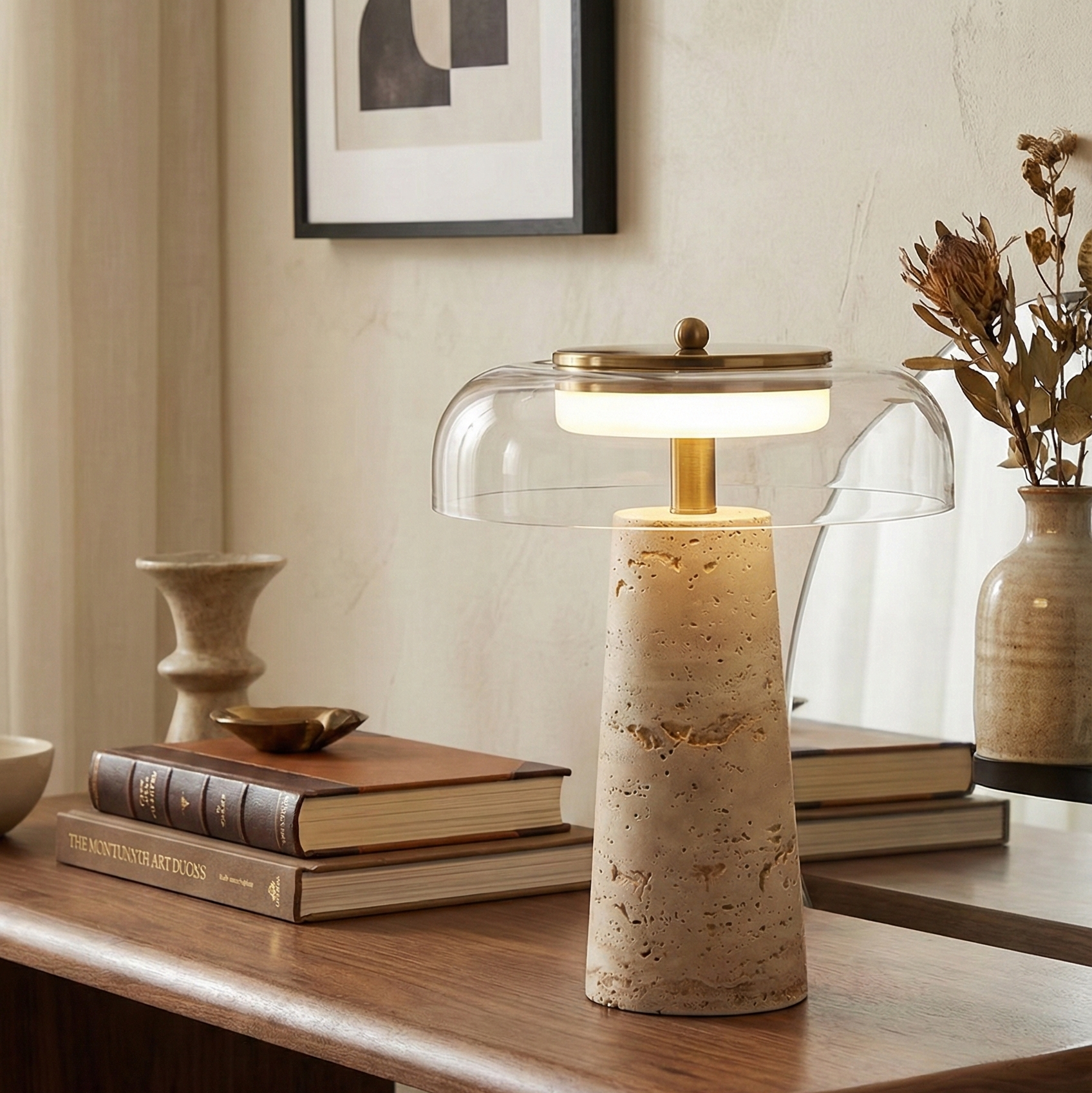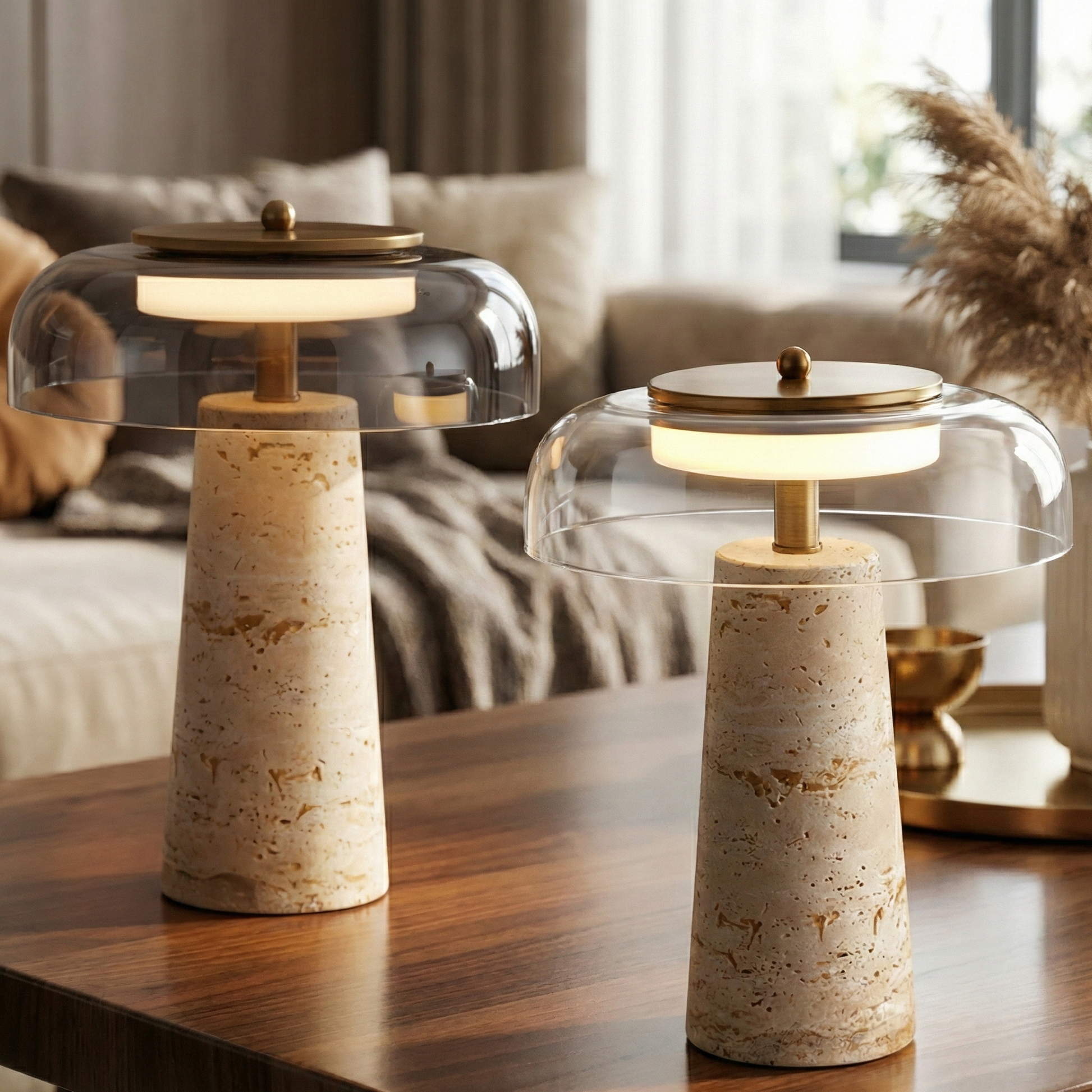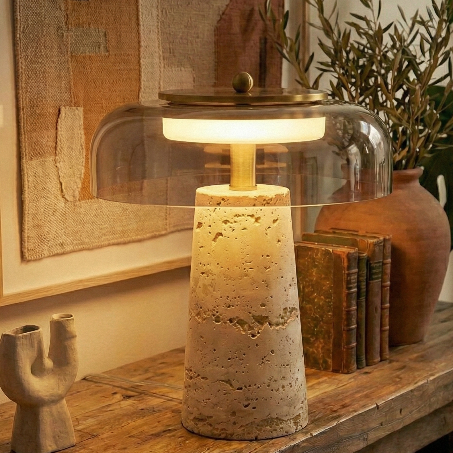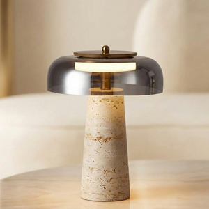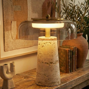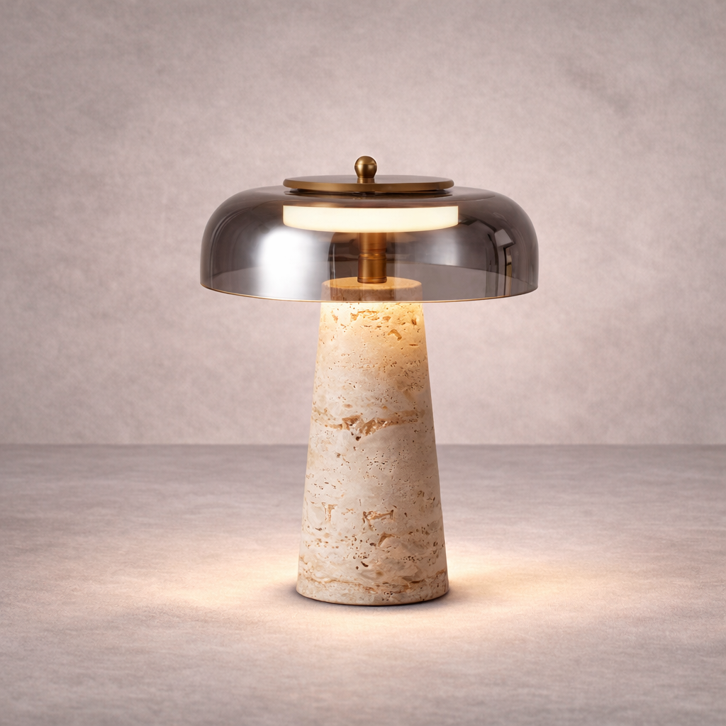 Lampe en Travertin et Verre Transparent – Travénoir