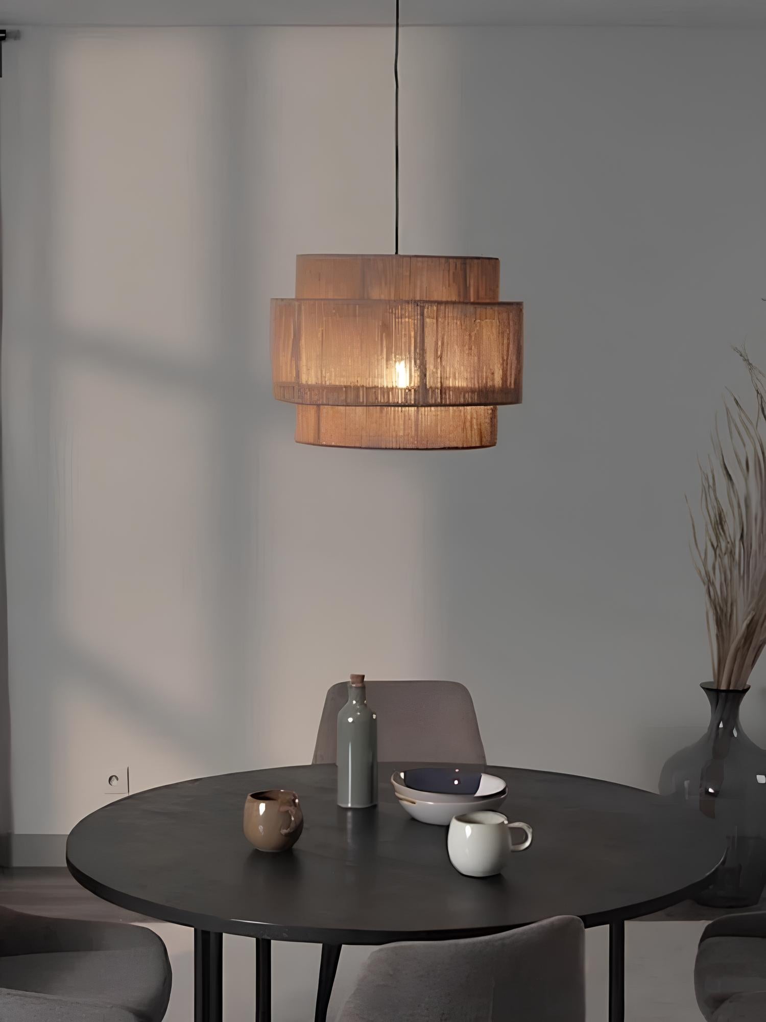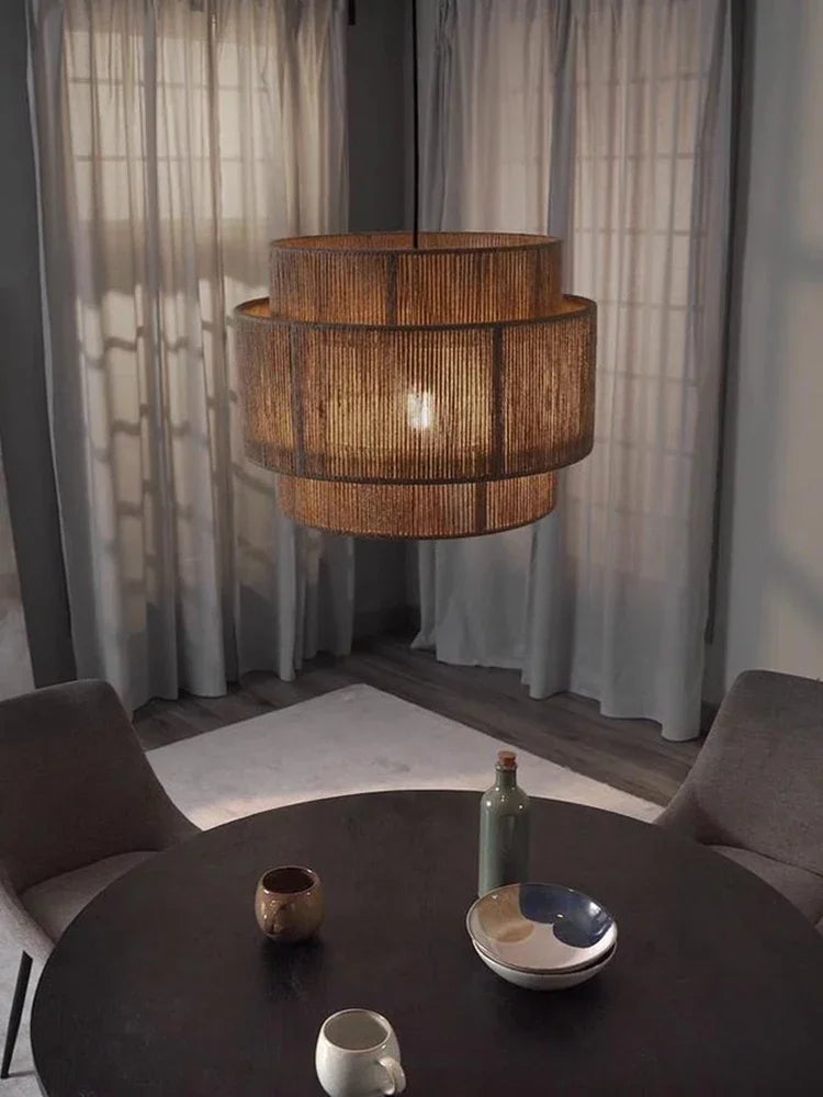 Apportez une touche bohème et chaleureuse à votre intérieur avec cette suspension en rotin naturel. Son design à double structure superposée crée un jeu de lumière unique, idéal pour sublimer une salle à manger, un salon ou une chambre.