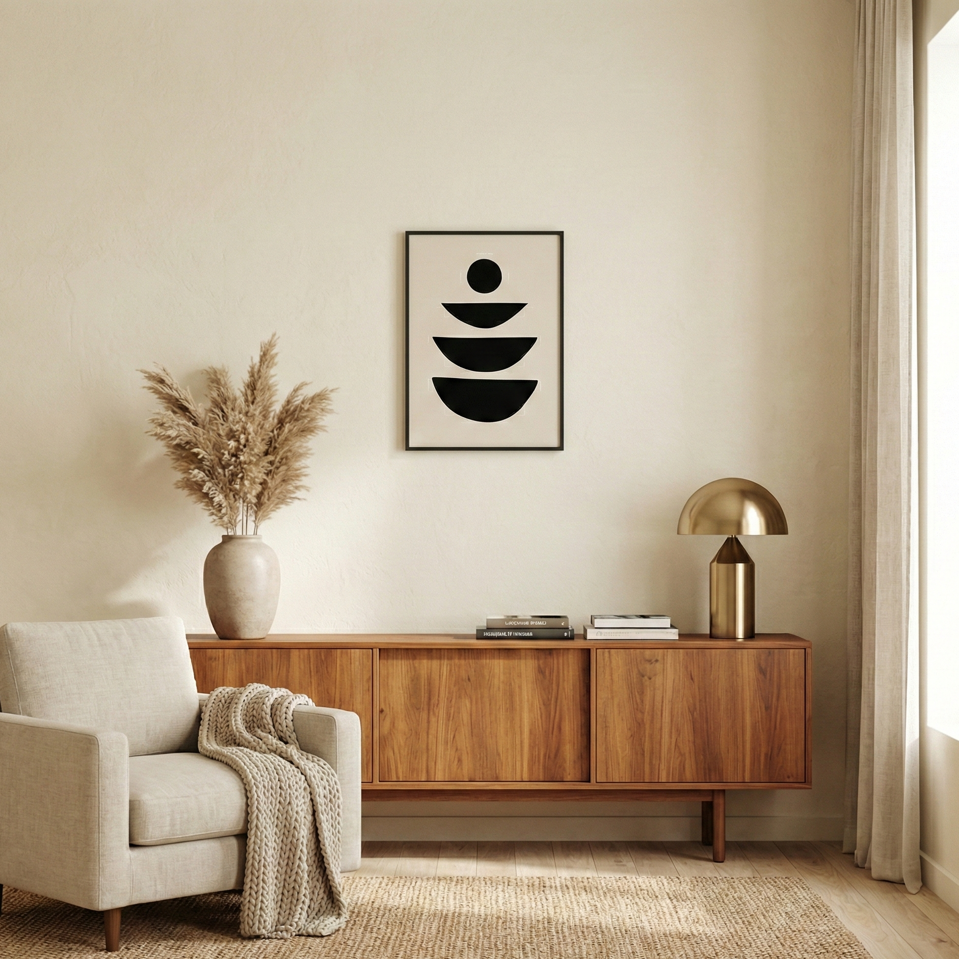 Parfait pour un salon épuré, une chambre apaisante ou un bureau design, ce tableau noir et beige s’accorde facilement avec une déco scandinave, japandi, wabi-sabi ou contemporaine. Une affiche abstraite intemporelle qui structure un mur avec élégance et simplicité.