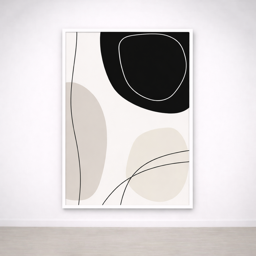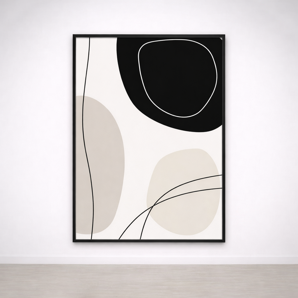 Idéal en décoration murale pour un salon contemporain, une chambre apaisante ou un bureau design, ce tableau noir et beige s’intègre facilement dans un intérieur scandinave, japandi, wabi-sabi ou minimaliste. Une affiche abstraite intemporelle, pensée pour sublimer un mur avec sobriété et style.